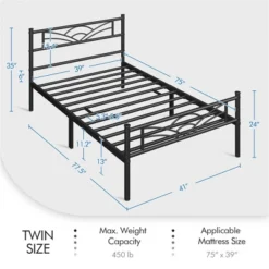 Yaheetech Metal Platform Bed With Arrow Design Headboard And Footboard
