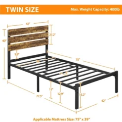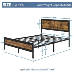 Yaheetech Rustic Metal Platform Bed With Wooden Headboard And Footboard