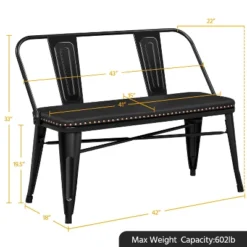 Yaheetech Industrial Metal Dining Bench With Upholstered Seat, Black