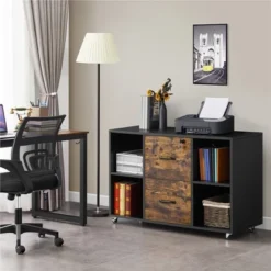 Yaheetech Rolling File Cabinet With 2 Drawers And 4 Open Storage Shelves For Home Office