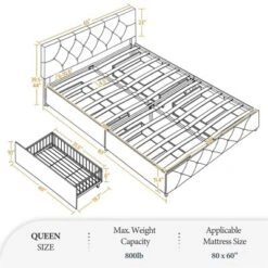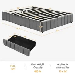 Yaheetech Upholstered Bed Frame Without Headboard With 4 Storage Drawers