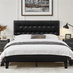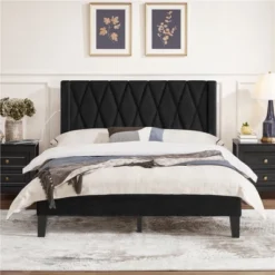 Yaheetech Upholstered Bed Frame With Charging Outlets & USB Ports