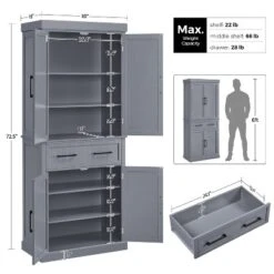 Yaheetech 72.5″H Kitchen Pantry Cabinet With Doors And Adjustable Shelves, Dark Gray