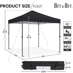 Yaheetech 8×8 Ft Pop-up Canopy With 9 Storage Pockets And Sandbags