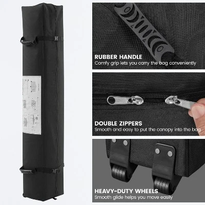- Try this waterproof outdoor canopy, which is made of coated iron and durable oxford cloth. The quality materials make sure this big tent works well for a long time. For a better experience, we also provide 8 stakes, 4 sandbags, 4 ropes, and 1 wheeled bag. Please double secure the canopy by using the accompanying accessories. Due to the wheeled bag, you can take this outdoor canopy to go out conveniently.