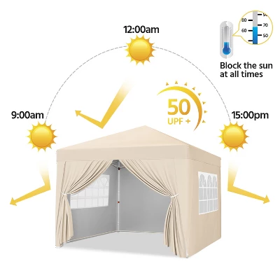 - Enclosed canopy: This outdoor canopy tent has three sidewalls and a door curtain, which provides great privacy protection. Two of the four sidewalls have windows to give you nice lighting.
