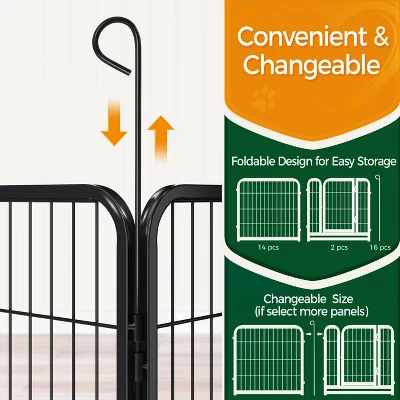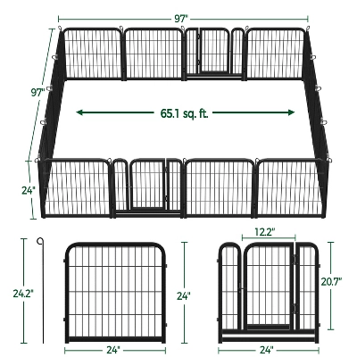 - Our premium steel pet playpen with a black finish creates a safe and open exercise area for pets. It’s versatile enough for use indoors, outdoor yard activities, RV camping, or traveling. You can limit your pet’s exercise area or separate them from other pets. The pet playpen is suitable for dogs, ducks, rabbits, etc. With no tools required, panels are connected by metal stakes, allowing them to be flexibly built in various shapes by adding or removing panels.