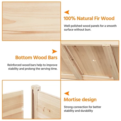 - 【Natural Fir Wood】 This raised garden bed is made of non-paint fir wood. Thanks to its strength, stability as well as natural resistance, this natural planting bed will work well for a long time.
