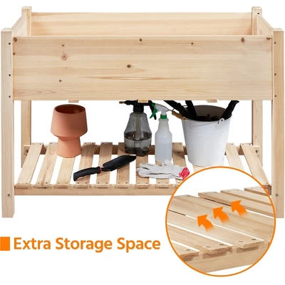 - How to grow beautiful plants conveniently and scientifically? Except all necessary gardening knowledge and tips, you may also need this raised garden box. To provide the plants with a good growing environment, we build this planter bed of natural solid wood and design four vents on the bottom board. This wooden garden box has two tiers so that you can grow plants and store tools conveniently. And the illustrated instructions will guide you through the assembly. A worthy and quality garden addition, have a happy gardening time with this ergonomic planting box now!