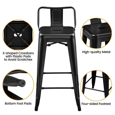 - Crafted with firm metal with matte coating, these 4pcs barstools are sturdy and durable enough for daily use. With a low backrest design, our chairs provide you with good lower back support and take off some of the stress on your back. Best of all, the stool is equipped with a quadrate foot ring which can help you get onto the seat more easily and allow you to change positions.
