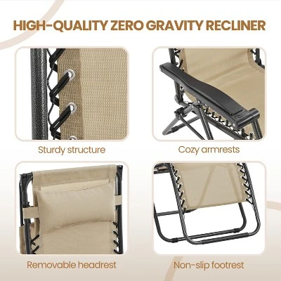 - 【Solid & Stable Frame】The metal frame is made of high-hardness and lightweight painted steel. It is designed in a triangle structure when this chair is unfolded in backrest-upright and zero gravity modes. The combination of robust material and reasonable structure jointly ensure your safety and stability sitting on this chair.
