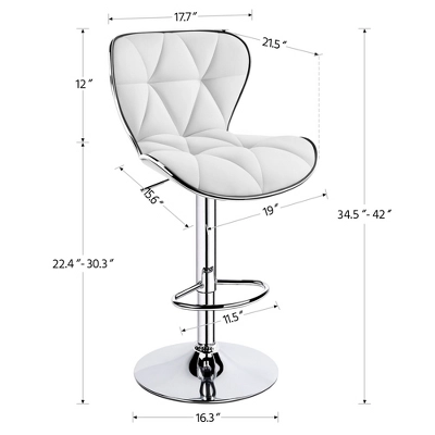 - Our adjustable bar chair is made of PU leather, foam, chromium-plated steel and plywood. The height can be adjusted from 34.5-42″, a very standard and scientific height as such kind of chair, the seat can rotate 360° and the weight capacity reaches 276 lb, which is very convenient for you to turn around without standing up and can meet all your needs in various situations.
