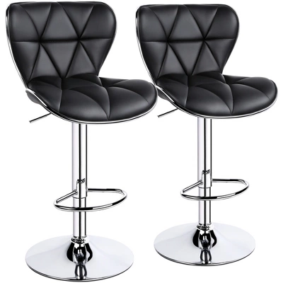 - 【Multifunctional】 Our 2pcs bar stool set features a 360° rotating seat, which can free you from frequent moving when fetching or chatting; besides, the seat height can also be adjusted by a gas lift device for different needs. Adjusting range: 34.6-42.5”