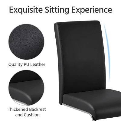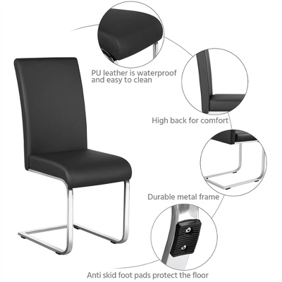 - The simple contemporary design of our dining chairs can accompany any type of dining table. The seat and backrest are padded with high-density foam for a great comfortable feeling and the overall metal frame gives you strong support. A U-shaped metal base provides comfort and ensures a sturdy structure. The dining chairs look very fashionable, which match any decor theme, perfect for home, restaurant, café, and company.