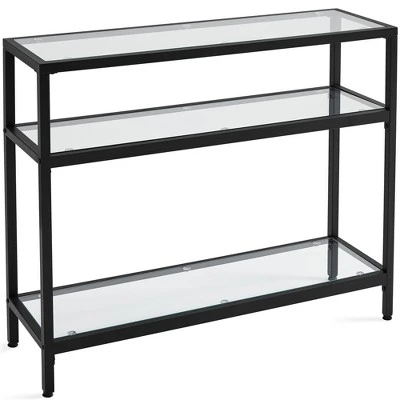 - Crafted with strong tempered glass and a protective coating covered iron, this porch table boasts excellent durability, stability and weight capacity. Even under the bump of your dog, it will also standstill. The multilayer structure allows it to accommodate books, magazines, and display plants and decorations. You can also apply it in your study to work as your bookshelf, in your kitchen to serve your delicate dishes or by your sofa to accommodate the stuff you need at hand. With classic color, simplest lines and transparent texture, this 3-layer console table can easily integrate into your room decores to serve as an elegant but practical addition to your tasteful space.