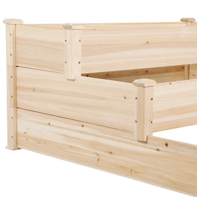 - Plan to build a dream garden in your backyard? You need this 3-tier elevated raised garden bed to help you. With our garden bed planter, you can grow 3 different plants or try different planting methods at the same time. This raised bed is made of solid wood, ensuring safe, durable and convenient use.