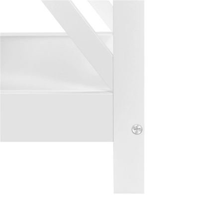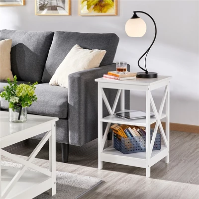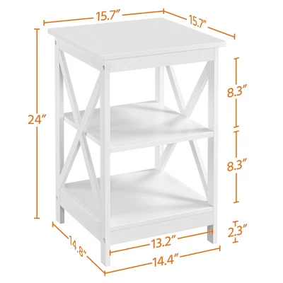 Our cost-effective bedside table is made of high quality MDF and Pine material, which ensures a long life span. It has well-done liquid-resistant smooth finishing to make it easy for your daily maintaining. This end table cabinet features 3 shelf design, which offers ample storage space to keep items orderly and organized. X shape design ensures its stability and makes the night stand more durable. Its proper size makes it perfect for offices, parlors and bedrooms, as console table, coffee table, bedside table. The overall dimension is: 15.7×15.7×24’’ (LxWxH). The distance between shelves is 8.3’’. The lowest shelf is 2.3’’ away from the floor. The width of the legs is 14.4’’ and 14.8’’. The distance between the legs is 13.2’’. Please see image for exact measurements.