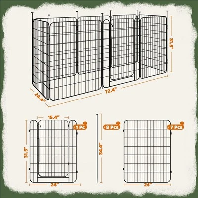 - Sturdy Construction: Crafted from quality powder-coated metal, this 8-panel metal pet fence with door features a reinforced structure, combining a solid metal frame and metal wires for long-lasting durability that resists bending or breaking