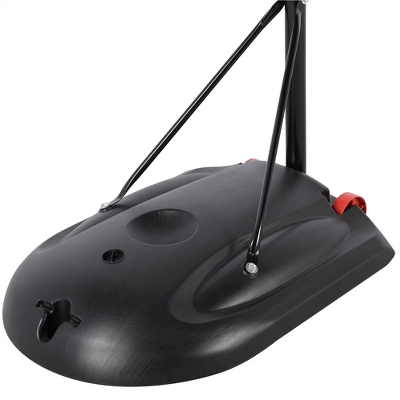 - Turn your backyard into a playground filled with laughter and memories with our Portable Basketball System. It has a big weighted base that can be filled with water or sand for added stability and safety, and the two wheels ensure good mobility of the stand. Featuring 6 pairs of holes for height adjustments, the telescoping post can be easily adjusted from 7′ to 9′ in 4.7″ increments.