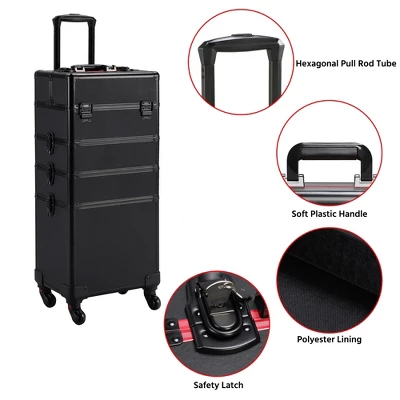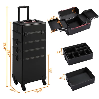- This cost-effective 4-in-1 makeup trolley can be transformed into a 3-in-1 case into a 2-in-1 train case by simply removing tiers. With the cost of only one case, you can have the benefit of 3 case choices: a 3-in-1 case, a 2-in-1 case, and a separated top case.Detachable all-directional rolling wheels make this trolley makeup case convenient to carry around. Minimalist design and chic style render it stand out from all the cosmetic case on markets. Aesthetically pleasing professional makeup train case with powerful functions.
