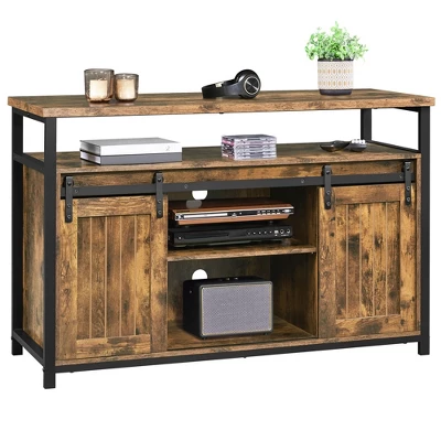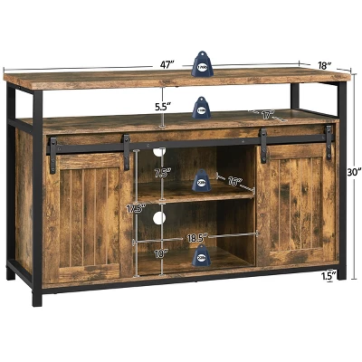 - Vintage barn doors: This storage TV bench is highlighted by barn doors, combining both chic and vintage looks as well as an excellent space-saving approach for accessing the shelves. The door runners are smooth and noise-free.