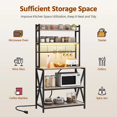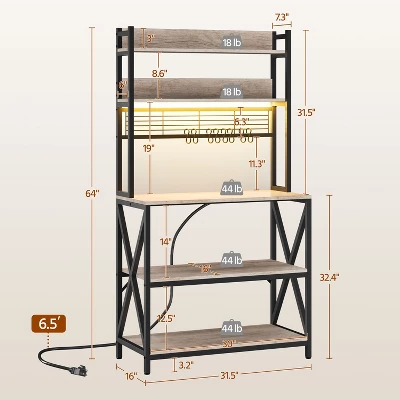 - Maximize your kitchen’s space with this multi-tiered baker’s rack. Made of sturdy engineered wood and metal, it offers strength, stability, and easy cleaning. Anti-tip straps provide safety, while the rustic design adds style and organizes essentials effortlessly..
