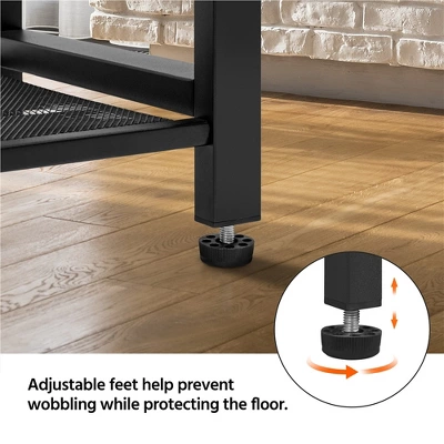 - This 6-tier entryway shoe rack features a dark rustic wood top with a platform and drawer and a 5-tier metal mesh shelf in different lengths. The mesh shelf adds an airy expression to the storage organizer by reducing the color saturation of the all-black color. While the rustic brown-black work as a classic color match of industrial decor style, which can be suited in many different decor styles. The storage shelves in different lengths can be the perfect solution for the arrangement of the shoes with higher bootlegs. In addition, the 5-tier shelf is spacious for your whole season’s shoes.