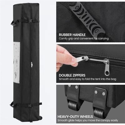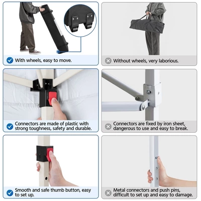 - Swift Height Adjustment: Changing the canopy height is quick with telescopic legs: Just press the buttons to adjust the height between 8′, 8.3′, or 8.6′, offering flexibility for different setups