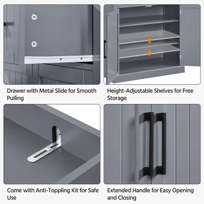 - 【Quality Priority】Constructed from durable CARB P2-compliant MDF that lends exceptional strength and durability, this tall storage cabinet ensures the product’s structural integrity over time. With a weight capacity of shelf:22 lb, middle shelf: 66lb, and drawer: 28lb.