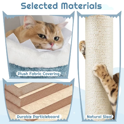 - 【Captivating Ocean Theme】Drawing inspiration from the mesmerizing ocean, this cat tree in vibrant ocean blue boasts an array of delightful features such as an adorable shark’s mouth-style igloo perch, fish-shaped scratcher, and wavy-edged boards that perfectly capture the essence of the sea.
