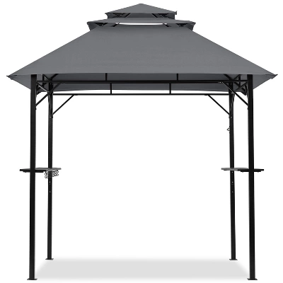 - Weather-resistant Design For All Seasons: Crafted from rugged polyester fabric with a water- and tear-resistant PA coating, this 8 × 5 FT BBQ gazebo tent is fortified by a galvanized metal frame for enhanced weather resistance. Additional crossbars on the frame bolster overall stability