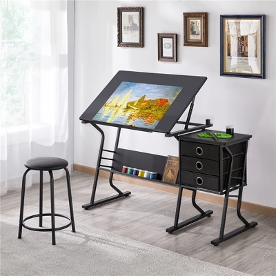 - Having a versatile drafting table like this may help your work move to the next level! Featuring a tilt angle adjustable tabletop that raises from 0 to 40-degree for different purposes, this drafting table can also serves perfectly as a spacious writing/ computer desk. Its functional construction accommodates art supplies, computer, laptop, books, and more.