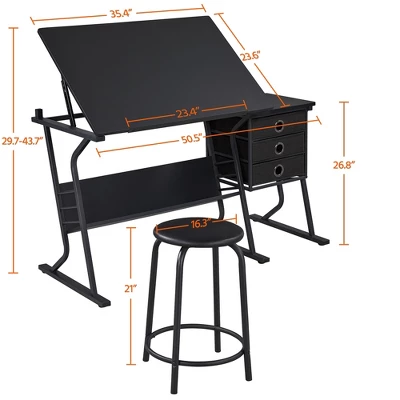 - 【Solid Construction】The drawing table features CARB-Certified Phase 2 MDF countertop with PVC coating and a powder-coated steel base, providing sufficient stability for your daily use. The foam-padded stool is covered with PU leather and supported by metal legs, which can hold up to 120 kg/ 265 lb