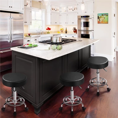 The professional salon & spa stool is perfect for a barber, salons, lab, warehouses, art studio, garages, tattoo shops, beauticians, doctor offices and home use, etc. This salon stool has a comfortable PU leather seat and a chrome finish metal base for long-term service. The footrest of adjustable gas lift stool provides you a comfortable feeling. Height adjustable salon stool is built with five 360° swivel wheel casters for a proper position.Specifications:Color: Black/Pink/WhiteMaterial: PU Leather & Foam & Chromed IronOverall Size (Approx.): 15 x 20.9-26.6” (Dia. x H)The thickness of Seat: 3.3”Seat width: 13.6”Width of the base: 13”Width of the wheels: 2”Max. Load Bearing: 264.5 lbG.W.: 9 lbPlease see image for exact measurements.