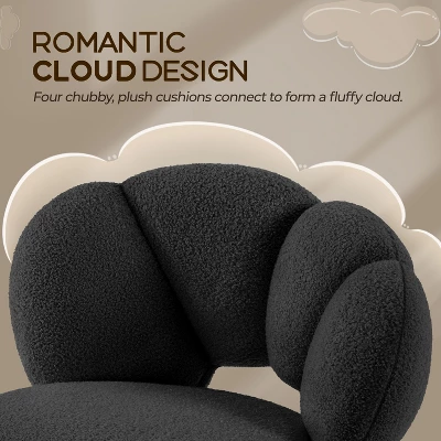 - 【Cloud-inspired Backrest】Inspired by fluffy clouds, this swivel vanity chair features an adorable backrest made of four oversized, plump cushions covered in teddy boucle fabric for ultimate comfort. It will transform your living or office space into a serene oasis with a touch of personality.