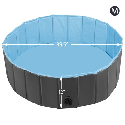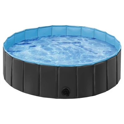 - It’s time to give your lovely pet a pool to have fun. Try this folding pet pool! No matter for fun or a bath, this durable round pool can work well. Besides, you can fill this pool with sand or small balls for a happy time. With the durable PVC surface and sturdy MDF boards inside, this swimming pool works indoors and outdoors well. The foldable design makes this pool portable with you going outside without taking up too much space. We have various colors and sizes for different-sized pets. Do not keep your pets waiting. Take it home for this hot summer!