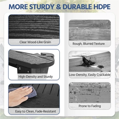 - Elegant Wood-like Surface: The HDPE material has a wood-grain texture, adding a vintage vibe to the foldable Adirondack chair, blending effortlessly into any outdoor setting with aesthetic please