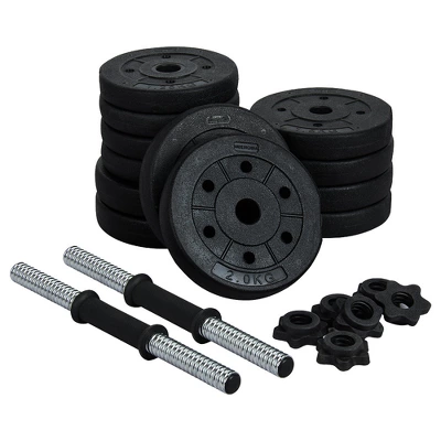 - This high-quality dumbbell set is made of concrete weight plates and chrome finish bars. It comes with different sizes of weight plates for you to adjust to your desirable dumbbell weight. This weight plate set features 2 pairs of spinlock collars and non-slip grips to provide you with a safe and secure exercise experience. It is great for your upper body workouts, which helps tone and sculpt your arms, shoulders, back and also strengthen your muscles. With this dumbbell set, you can exercise at home, in the office or any place at any time.