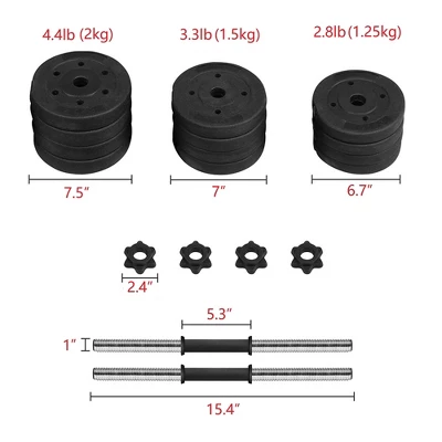 - 4pcs 4.4 lb Weight Plates = 17.6 lb
