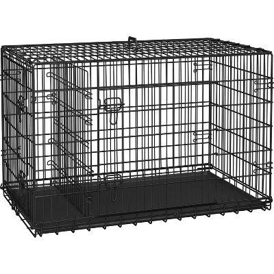 - High-Quality Metal Wire Dog Crate: This foldable dog cage features reinforced locks and smoothed edges for stability, a leak-proof pull-out tray for easy cleaning, and a double-door double-lock system for security.