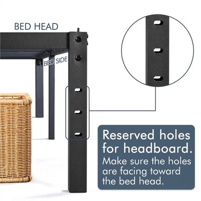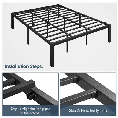 - Constructed of a solid and durable steel framework, this bed frame features thick and sturdy metal legs that provide you optimum stability for any type of latex, memory foam or spring mattress without a clumpy box spring. Thus you can have your bed set up in no time and enjoy amazing sleep and even snoring! The durability of the metal bed frame also prevents mattress sagging, which benefits the long-lasting use of your mattress. In addition, the high profile of the platform bed frame creates valuable under-bed space for storing your quilts, pillows, out-of-season clothing or other items, versatile for use.
