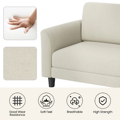 - 【Durable & Sturdy】This loveseat sofa is built with a blend of solid wood and engineered wood frame, with a maximum load capacity of 750 lb. The durable linen-like fabric is gentle on the skin and resistant to wear. Its breathable texture and sturdy structure are designed to provide a comfortable seating experience for years to come.