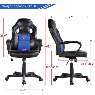 - 【Adjustable Gaming Chair】A racing-style chair that provides quality support and comfort. Seat height can be adjusted within 44.5-54.5cm/17.5-21.5’’ high according to an individual’s preference. Users can choose to tighten or release the tilt tension while rocking back and forth by the controlling knob beneath the seat.