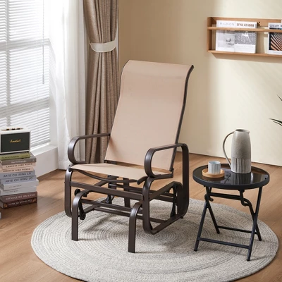 - Built to Brave the Elements: Designed with a sturdy powder-coated steel frame and resilient sling fabric, this glider chair combines long-lasting durability with effortless style. With a 300 lb weight capacity, it delivers reliable support for relaxation