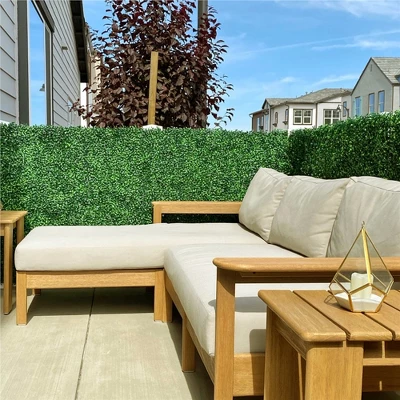 - The boxwood panels can be interlocked by snap-on lock and easily fastened to any fence, brick wall, railings, etc. No matter for indoor or outdoor decoration, our faux ivy will work well and light up your space. Our artificial boxwood panels can help you built a vibrant, delightful, and private relaxing space in your garden, patio, balcony, a worthy addition to home decoration or commercial arrangement.