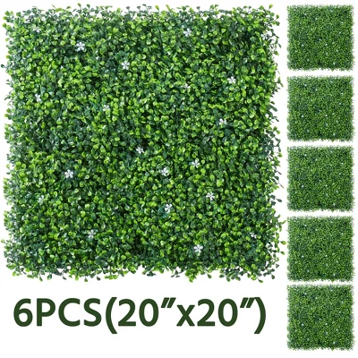 - 【Tight connection】Our artificial boxwood panels consisted of 6 pieces of turfs and each turf has 4 pieces of small meshes. The mesh backing and leaf layer with tight snap-on connection makes this green backdrop wall dense and durable enough, and not easily break.