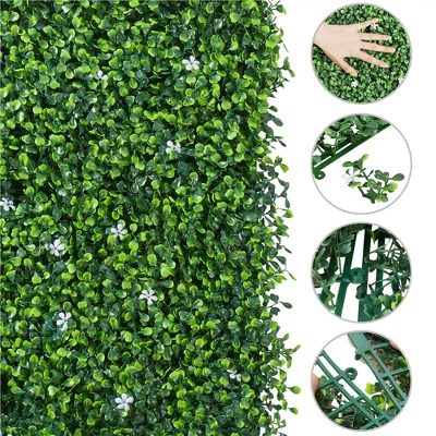 - 【Simple to use】 You can fix these artificial boxwood panels to the fence or railings using zip ties, or nail them to the wall. In case of bad weather conditions, extra reinforcement is needed. On the back of each panel is a cuttable plastic grid, which can be easily trimmed into any shape you want.