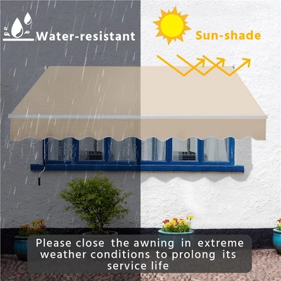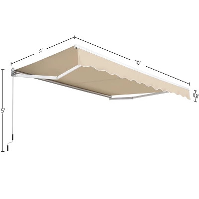 - 【All-weather Materials】Crafted from weather-resistant materials, this 10′ × 8′ retractable awning features a combination of aluminum, 280g/m³ polyester fabric with a PU coating, and solid steel for enhanced durability.
