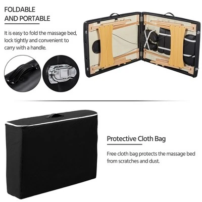 - 【2 Sectional & Portable】This adjustable massage table features 2 sectional parts. It will become a small portable case with handles and locks after folded. You can take it anywhere you need. The folding and portable design makes this wooden-frame table easy to put away when not in use.
