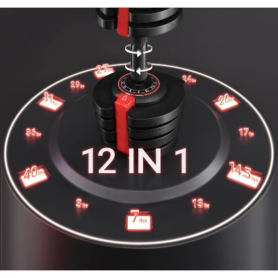 - 【1 Hand, 1 Sec, 12 Weights】You can switch between weights of this adjustable dumbbell from 3 lb to 40 lb in mere seconds by effortlessly twisting the selectorized anti-slip handle clockwise or counterclockwise with just one hand. Clear dials further enhance the ease of adjustment.
